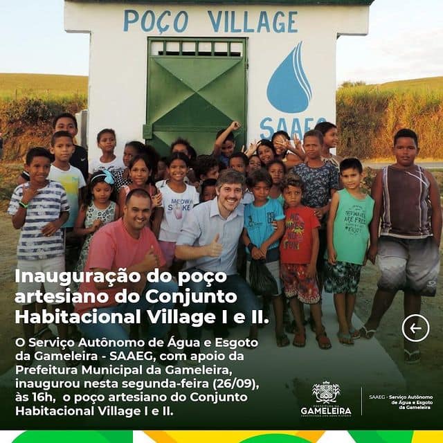 O Serviço Autônomo de Água e Esgoto da Gameleira – SAAEG, com apoio da Prefeitura Municipal da Gameleira, inaugurou nesta segunda-feira (26/09), às 16h, o poço artesiano do Conjunto Habitacional Village I e II.