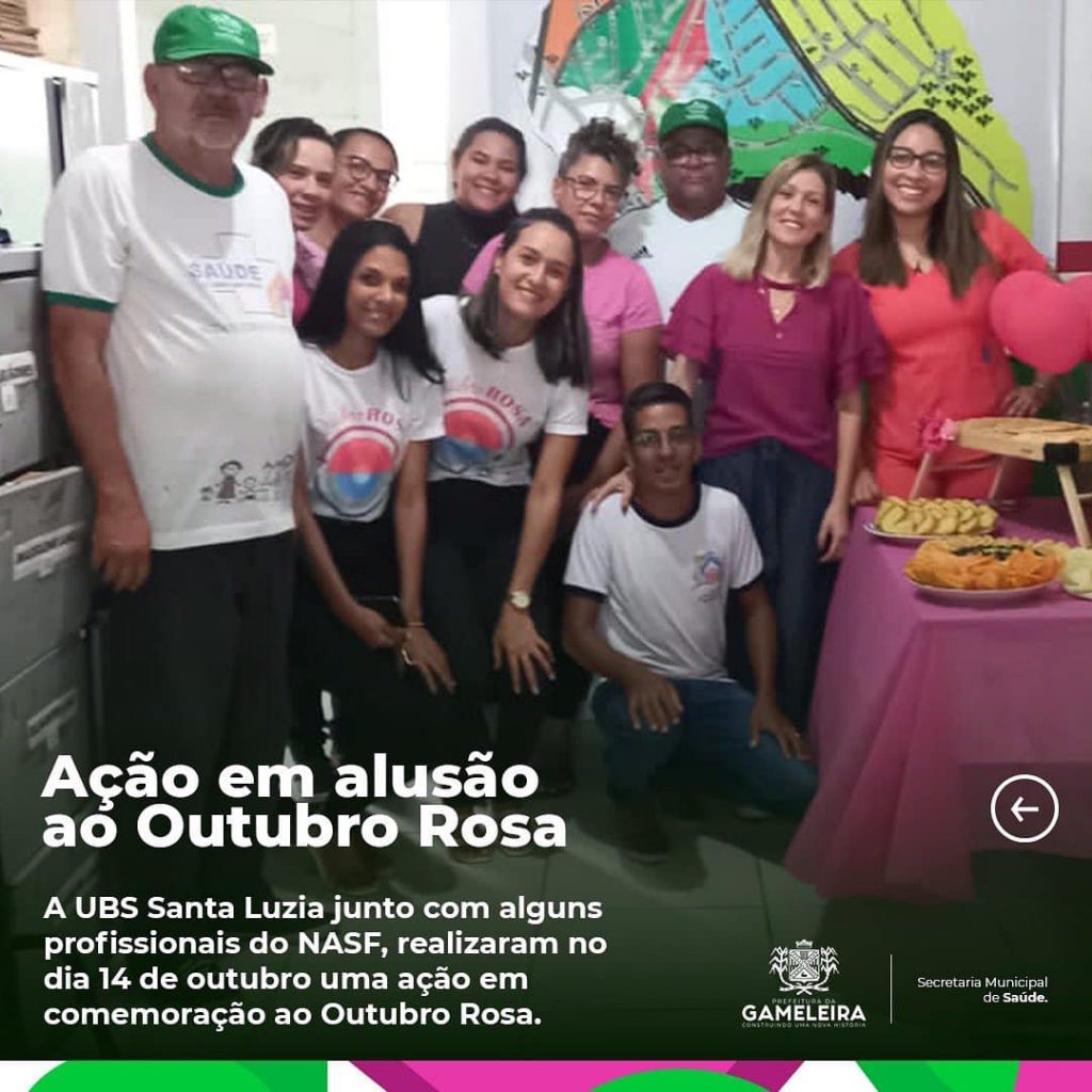 A Prefeitura da Gameleira através da Secretaria Municipal de Saúde por meio da UBS Santa Luzia junto com alguns profissionais do NASF,
