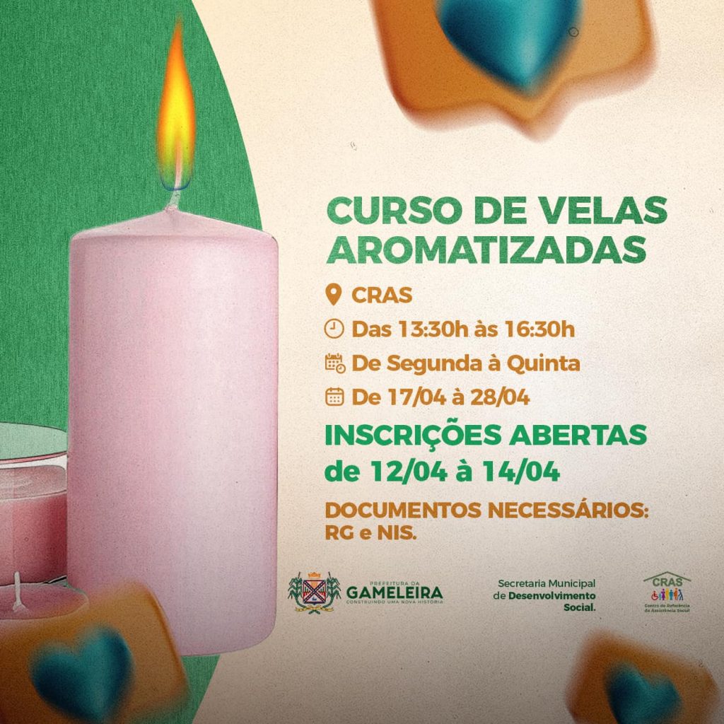 A Secretaria de Desenvolvimento Social, por meio do CRAS (Centro de Referência em Assistência Social) está oferecendo um Curso de Velas Aromáticas.