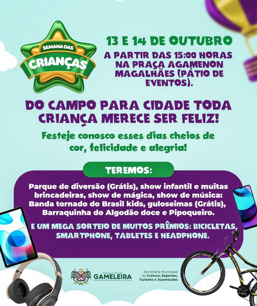 Nos dias 13 e 14 de outubro acontecerá uma grande festa para nossa criançada.